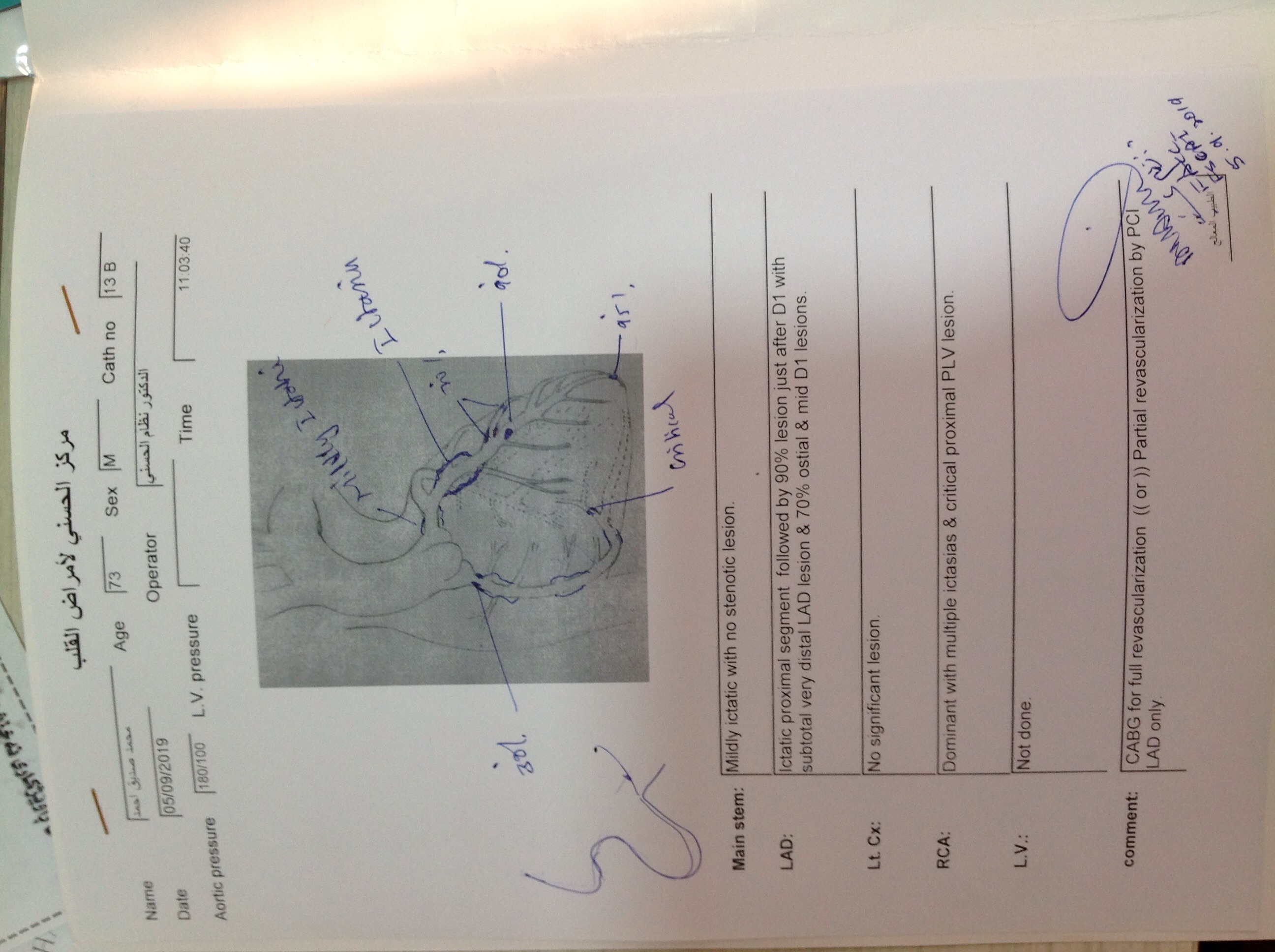 BP : 160/90 PR : 64 RR : SPO2 : 98% CC : GENERAL ASSESMENT FOR PCI ,after mild chest pain with easily fatigue for nearly a month
