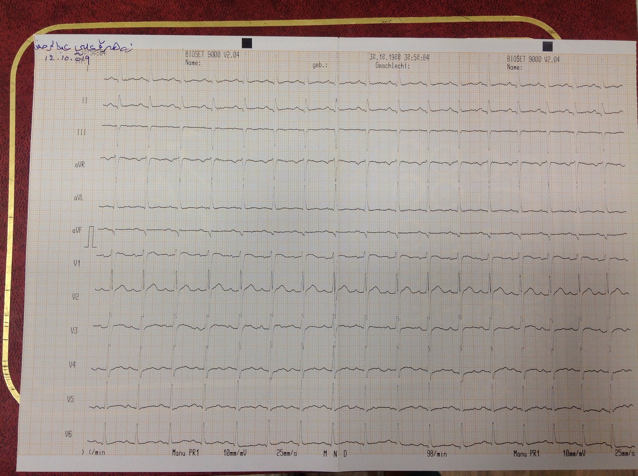 BP : 140/90 PR : 102 RR : SPO2 : 96 CC : moderate chest pain with dyspnea and palpitation for 3 days