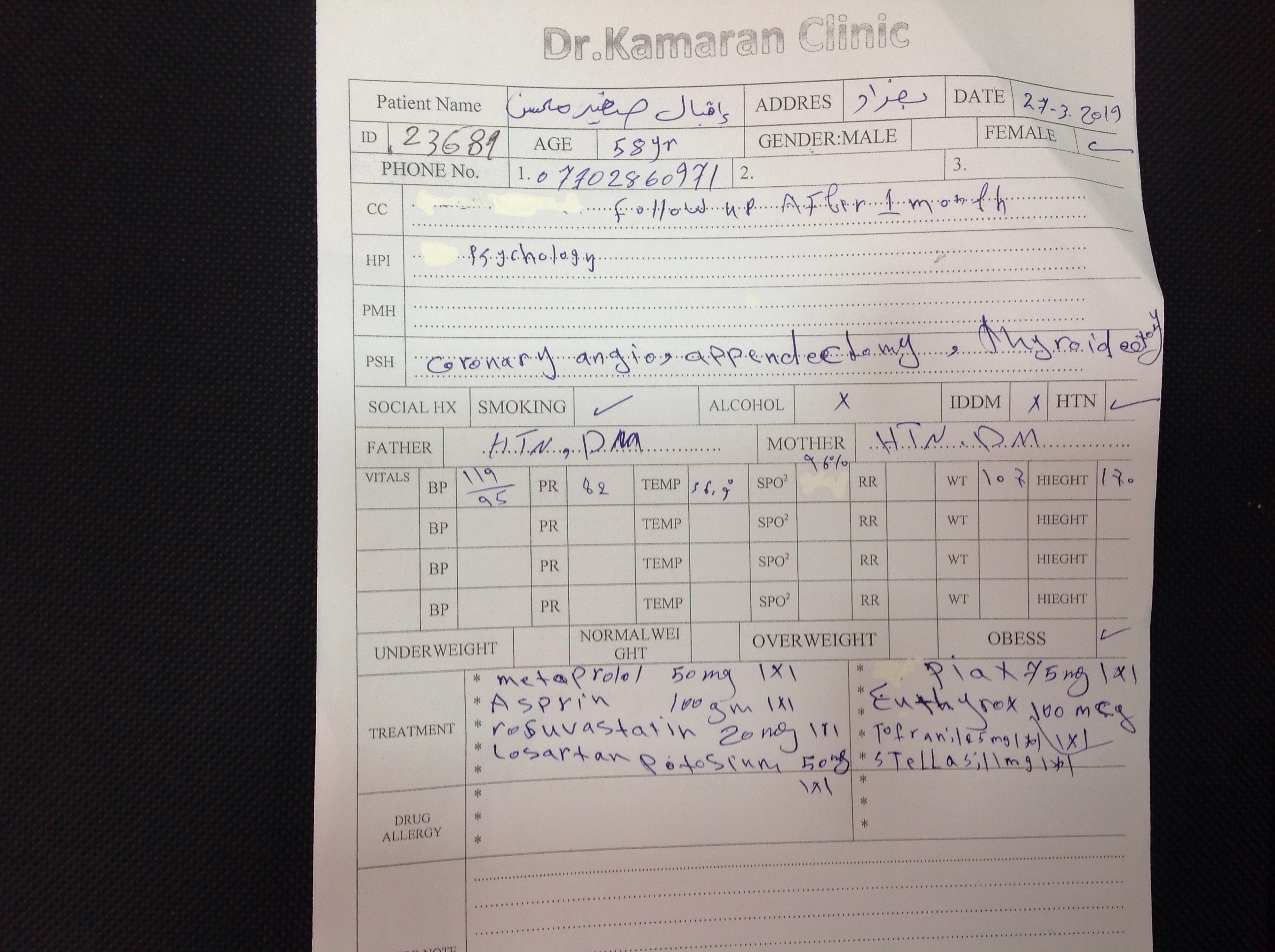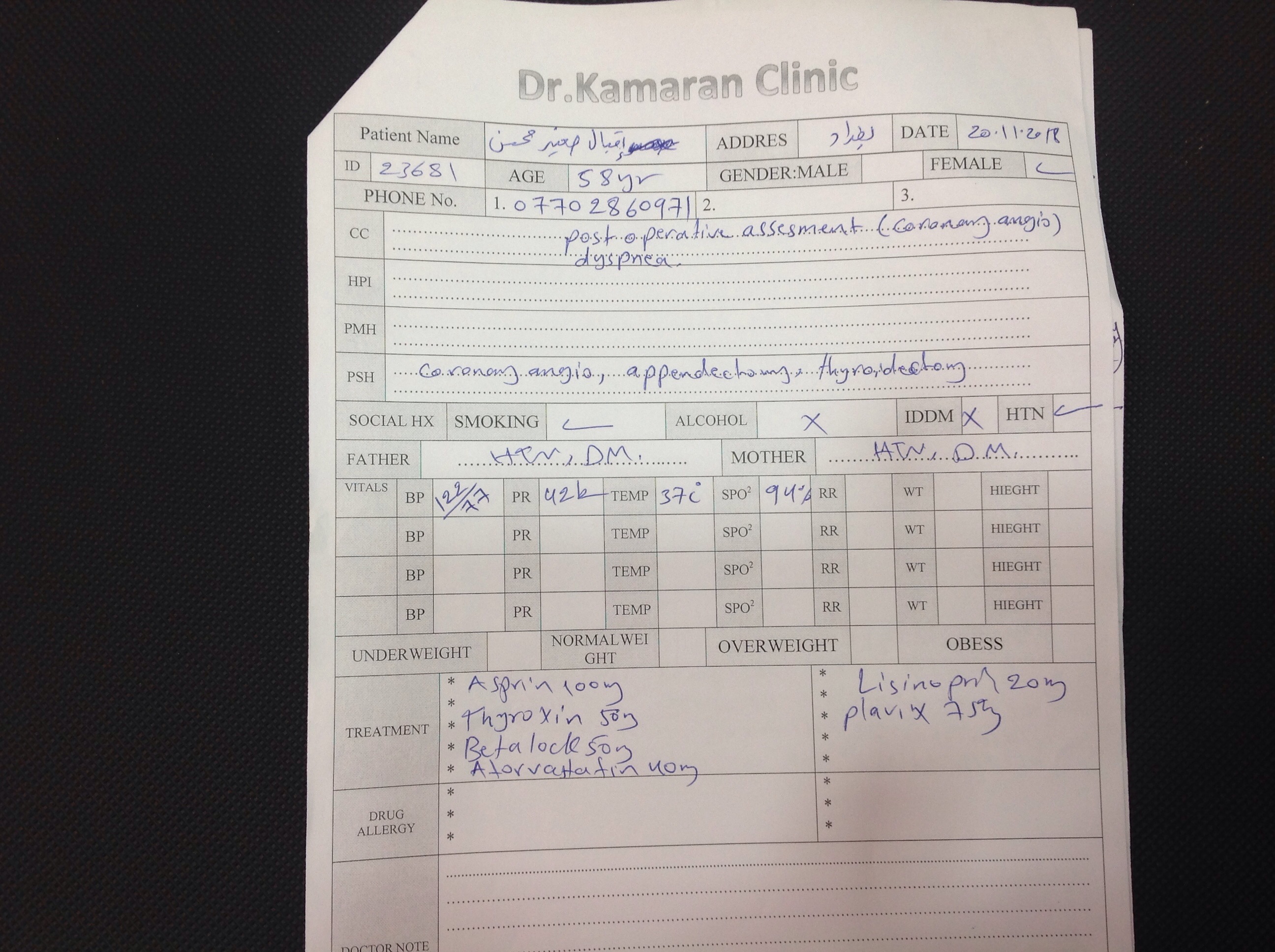 BP : 130/90 PR : 91 RR : SPO2 : 97 CC : FATIGUE DURING WALKING FOR A WHILE