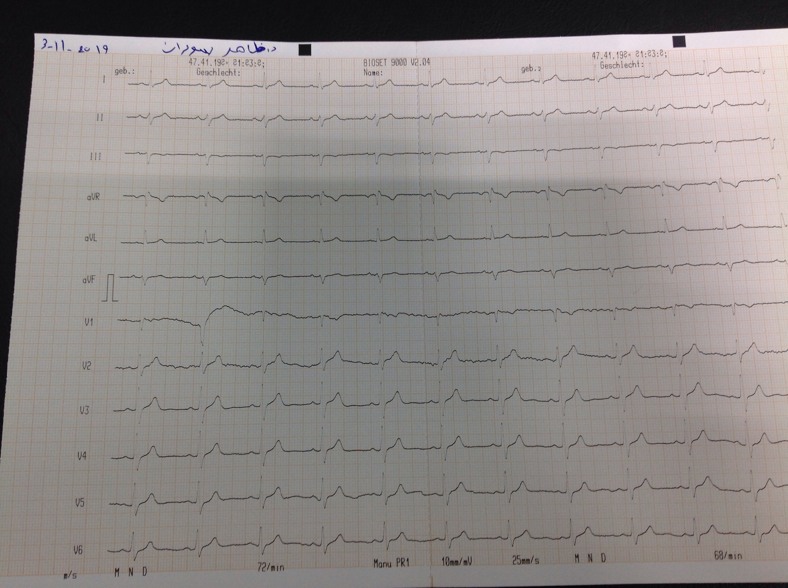 BP : 150/90 PR : 76 RR : SPO2 : 97 CC : Arhythmia,