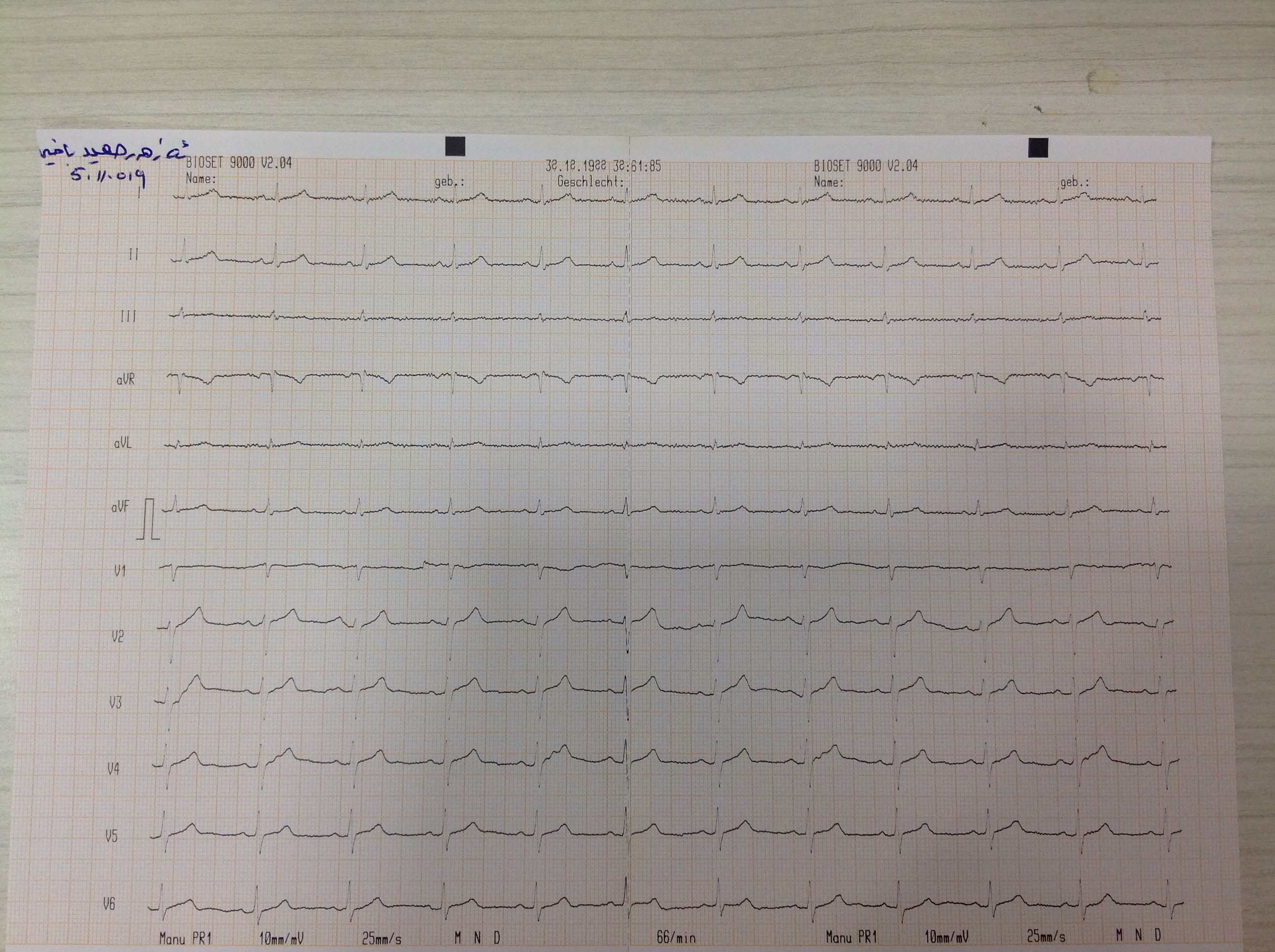 BP : 113/70 PR : 72 RR : SPO2 : 97% CC : fatigu & left side chest pain radiated to left arm & shoulder for 2 WK s