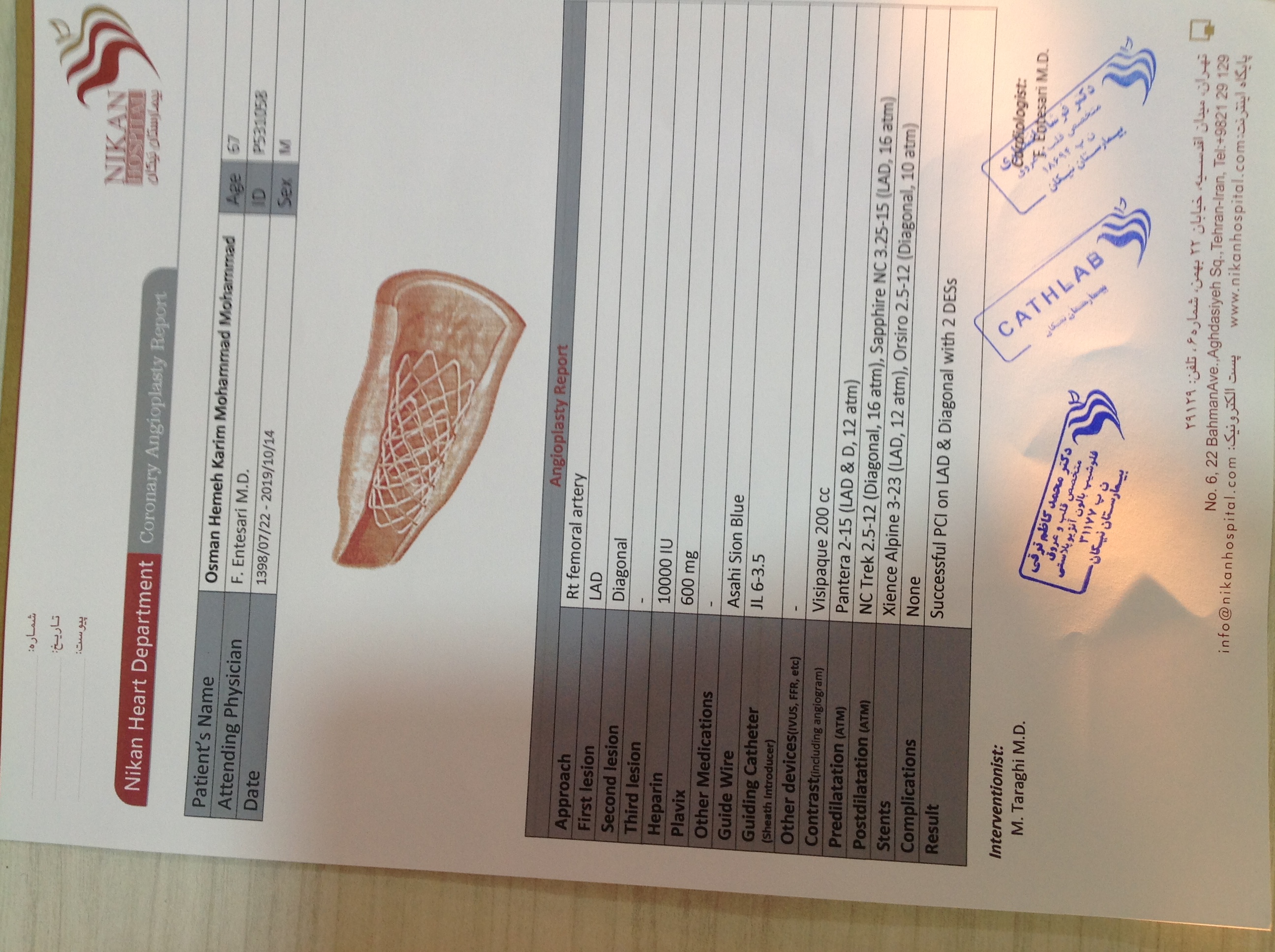 BP : 106/80 PR : 94 RR : SPO2 : 98% CC : GENERAL ASSESMENT AFTER PCI FROM 14/10/ 2019