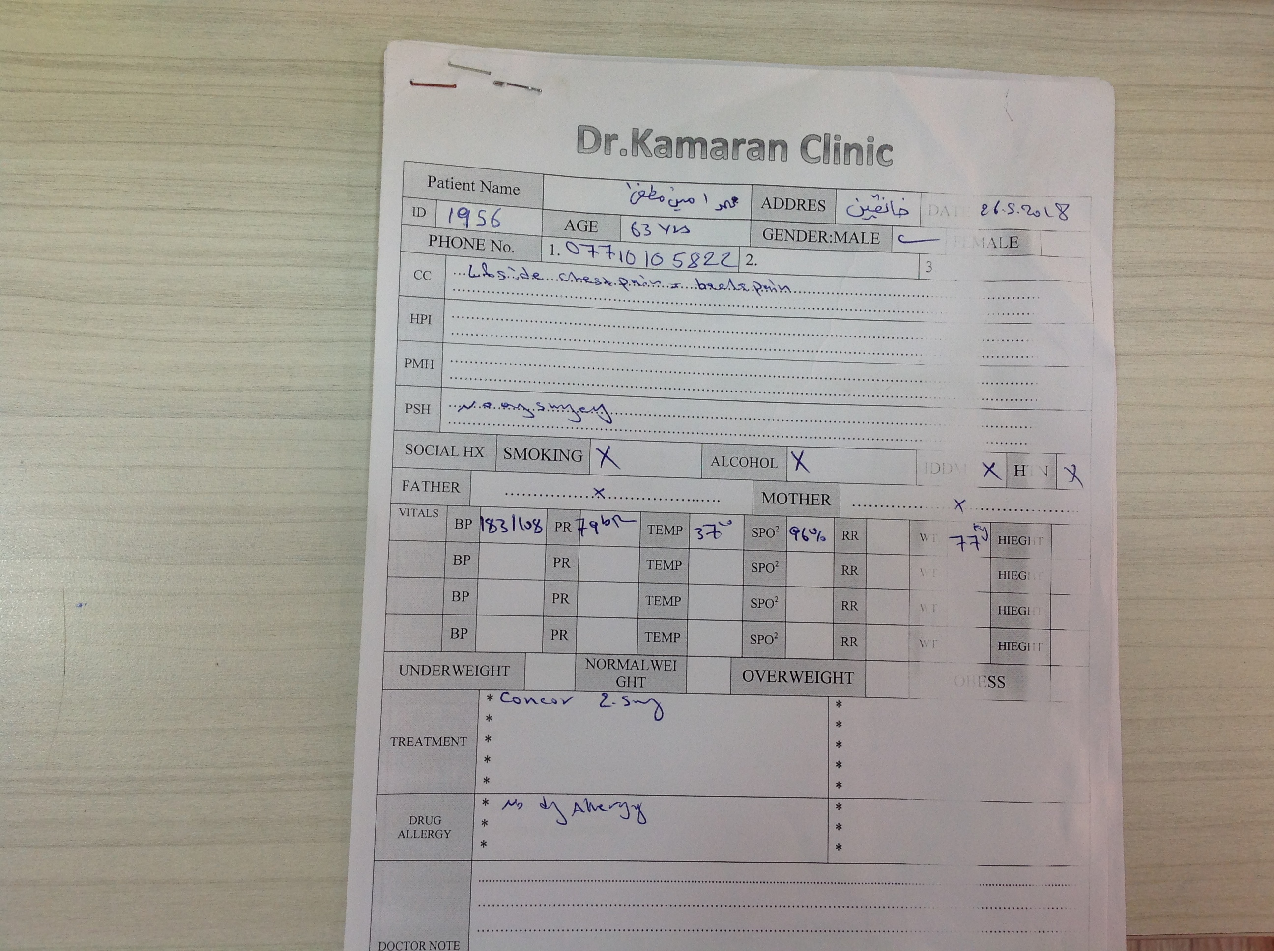 BP : 210/100 PR : 72 RR : SPO2 : 97% CC : PALPITATION FOR 2 MONTH