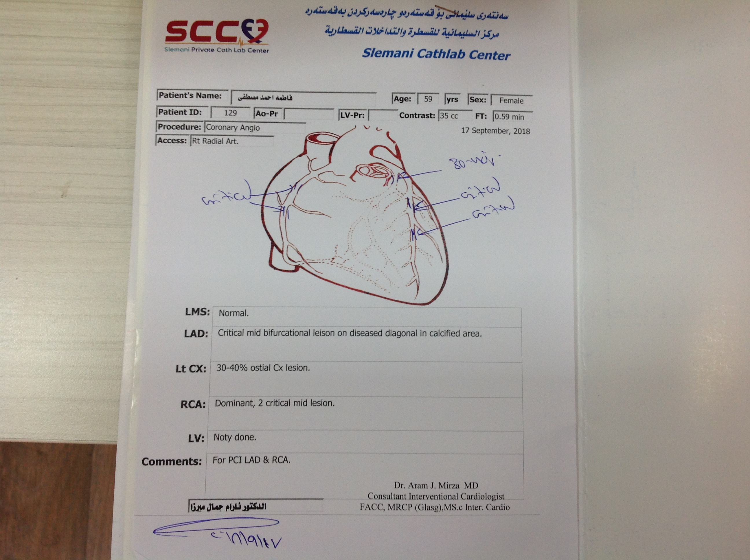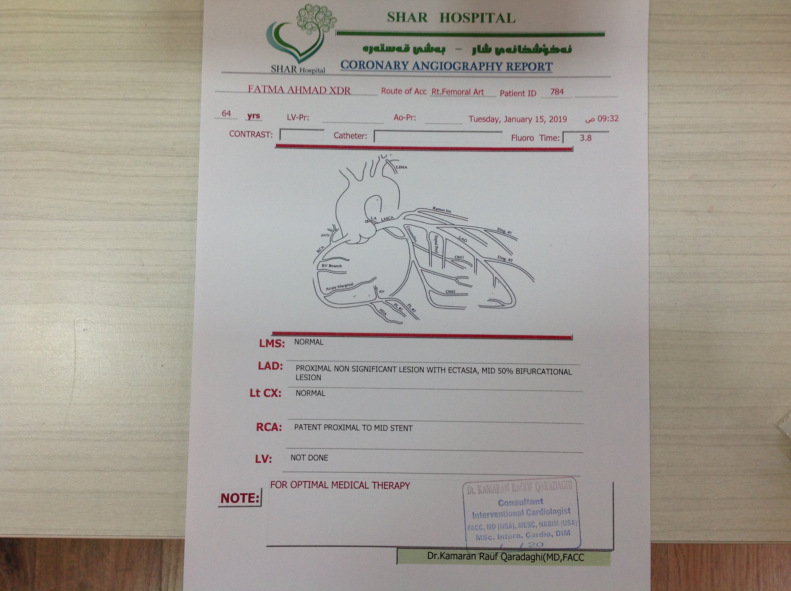 BP : 144/79 PR : 86 RR : SPO2 : 95 CC : FOLLOW UP 1 YEAR OF PCI