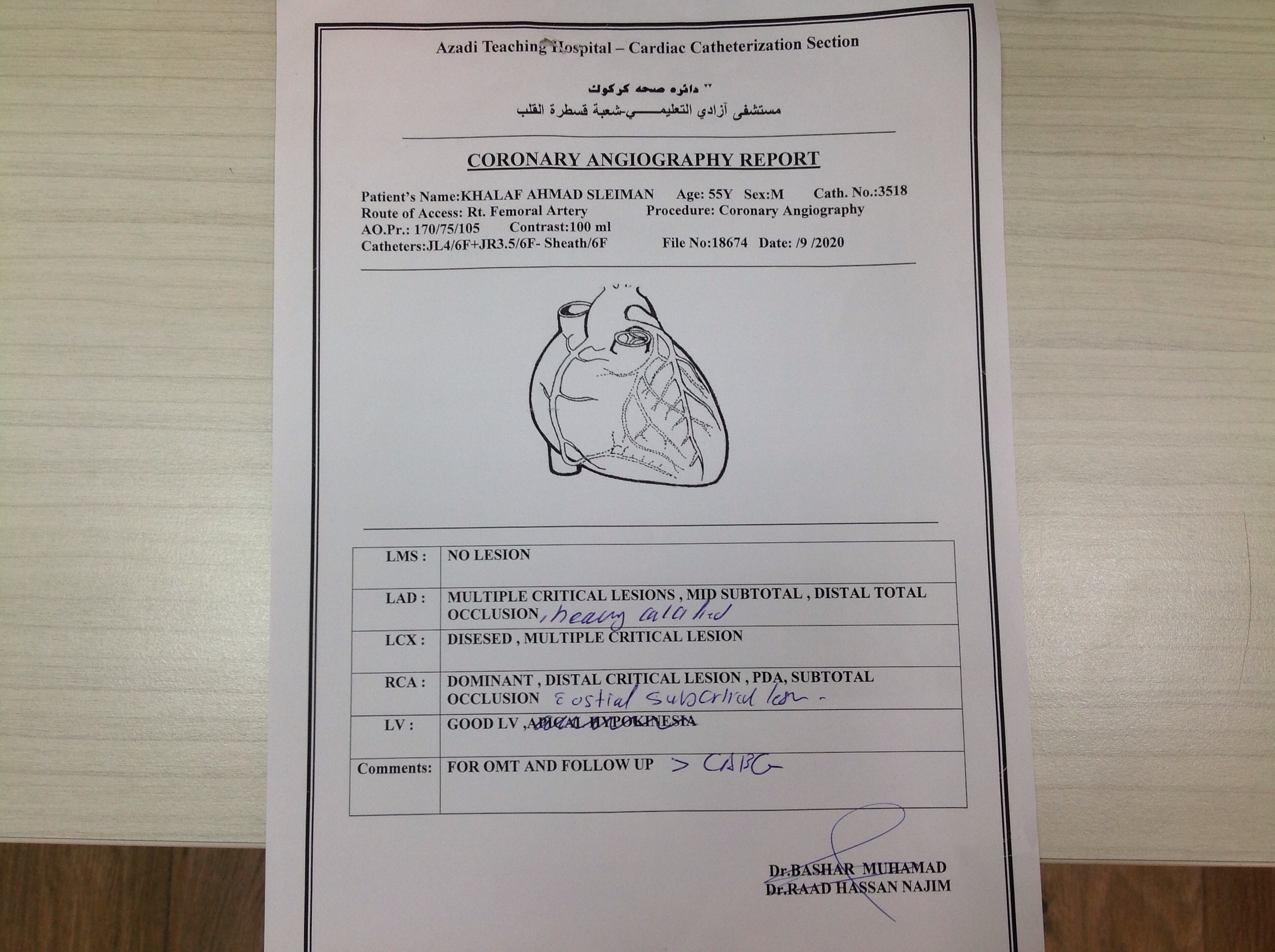 BP : 122/79 PR : 75 RR : SPO2 : 99 CC : FOLLOW UP AFTER C. ANGIO