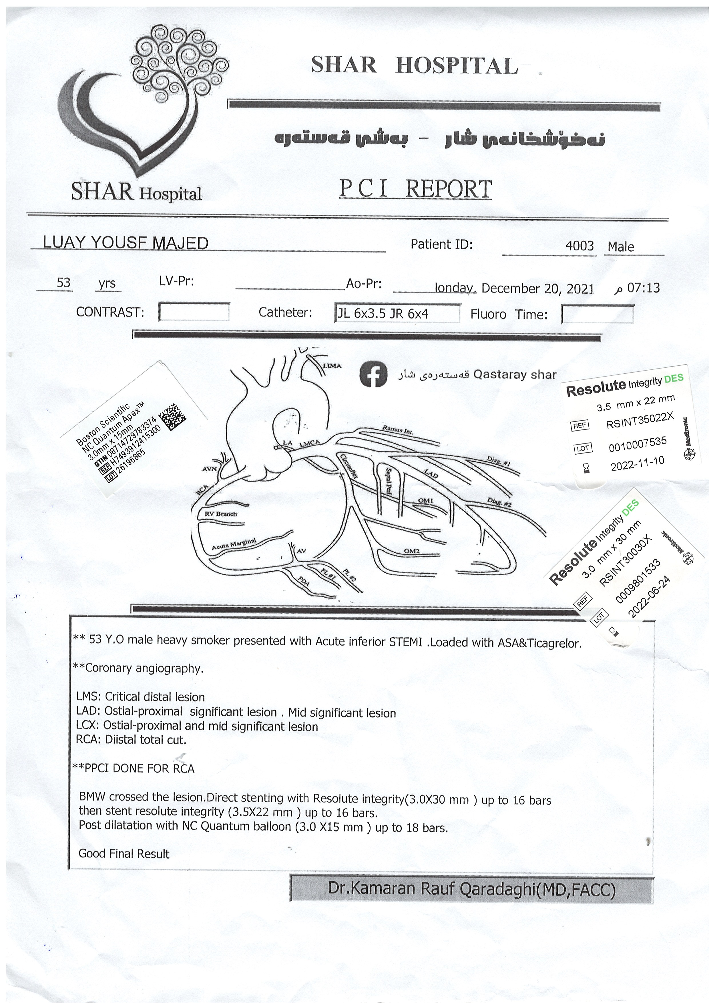 BP : 140/84 PR : 89 RR : SPO2 : 98 CC : FOLLOW UP AFTER PPCI