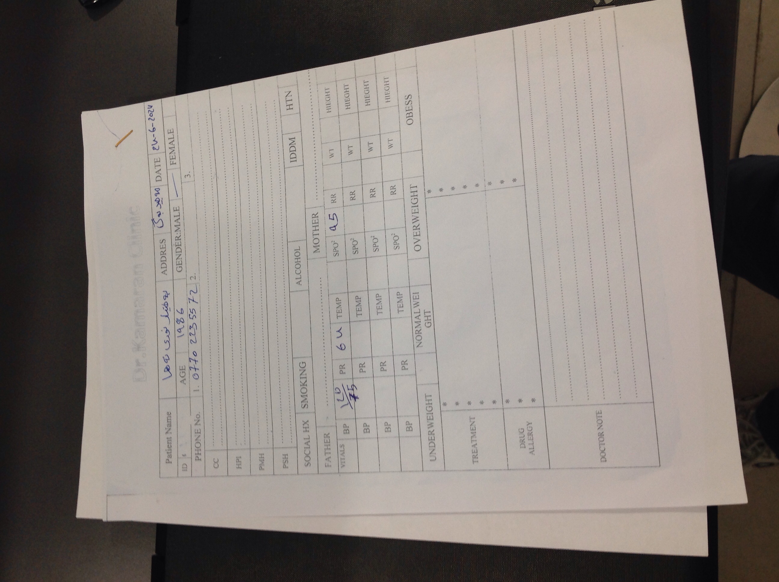 BP : 120/75 PR : 64 RR : SPO2 : 95 CC :