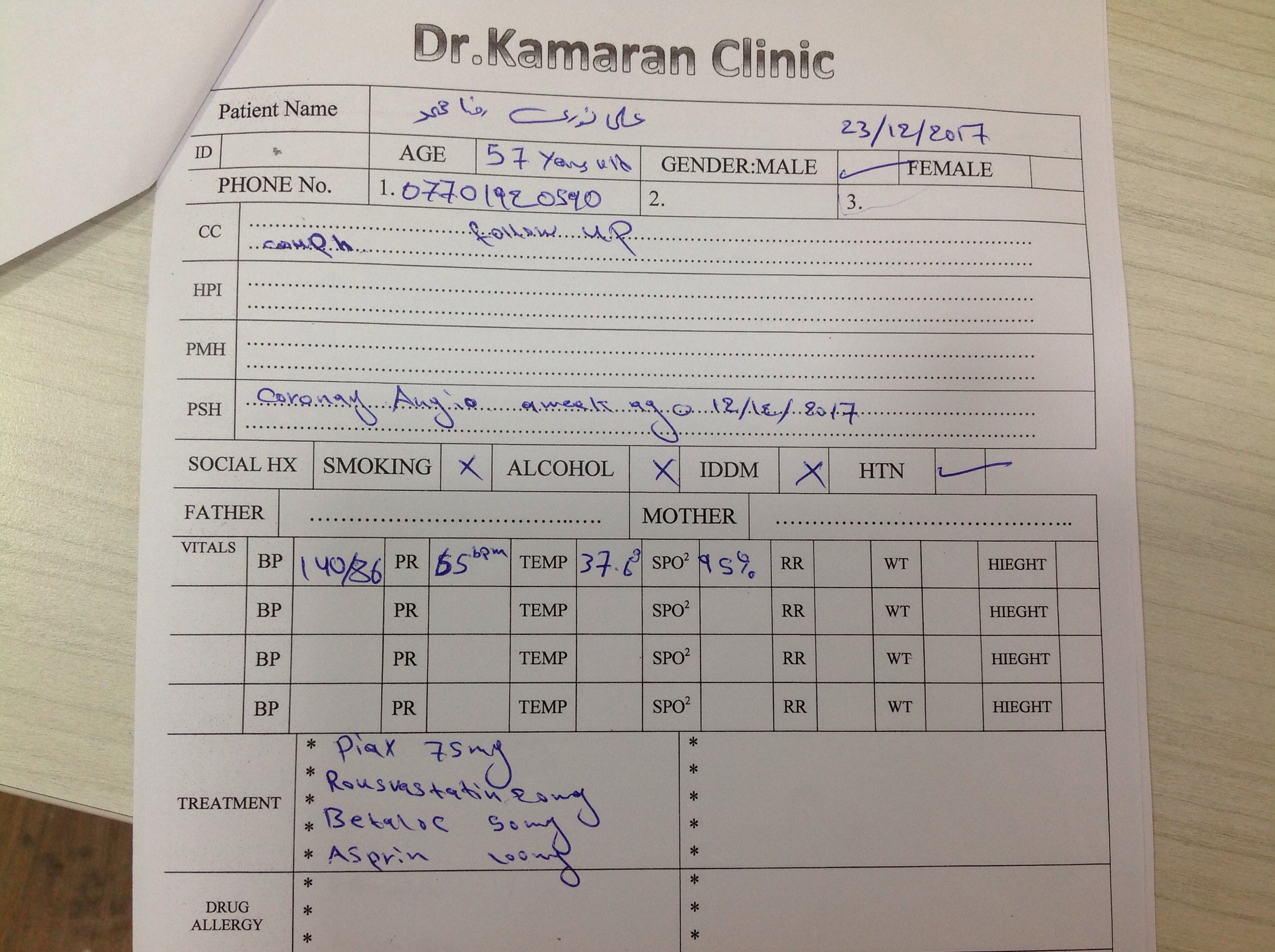 BP : 160/100 PR : 78 RR : SPO2 : 98 CC : follow up