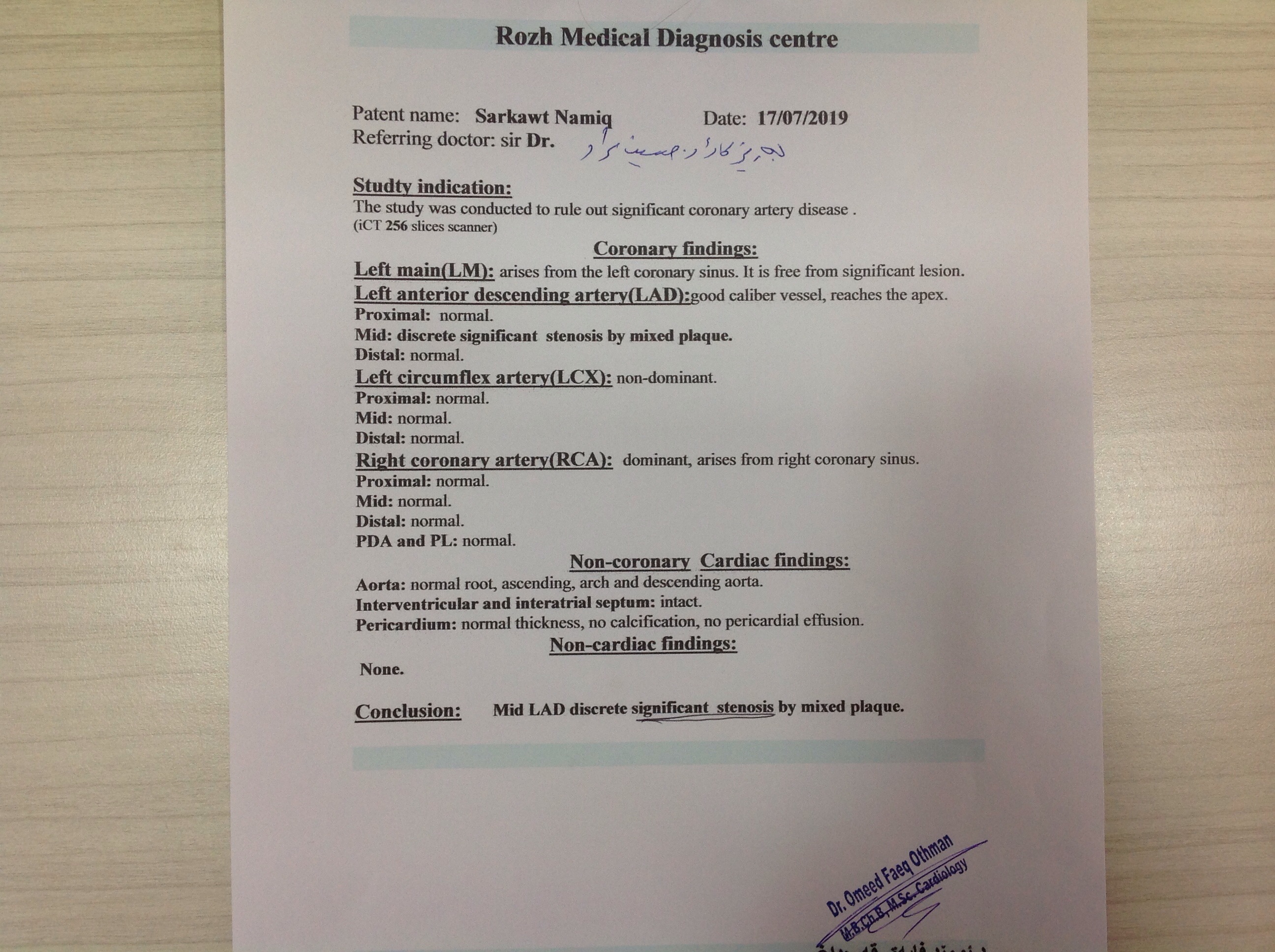 BP : 140/90 PR : 68 RR : SPO2 : 96% CC : General cardiac assesment for coronary angiography