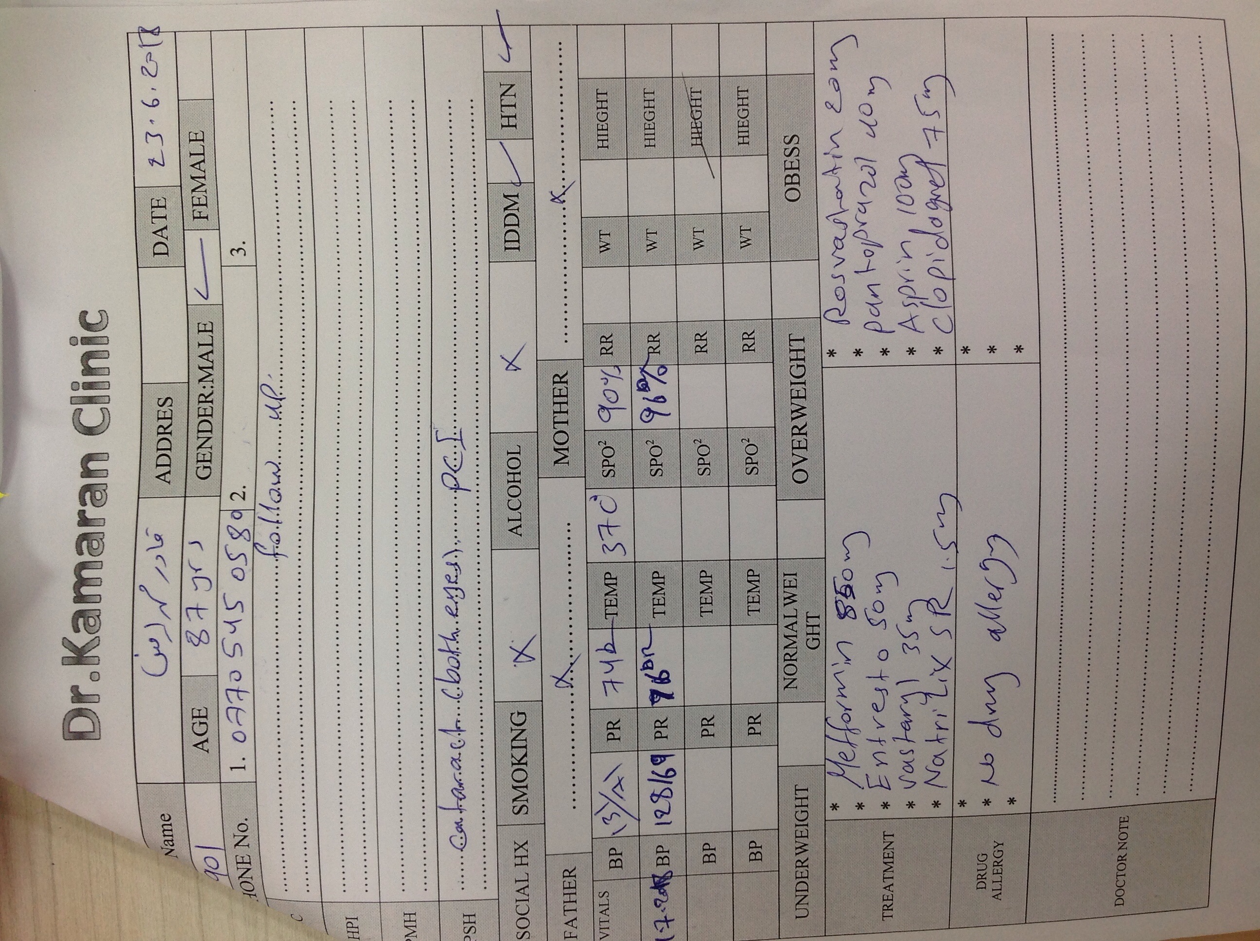 BP : 100/65 PR : 74 RR : SPO2 : 95 CC : Bilateral leg odema & decreased blood pressure for 2month