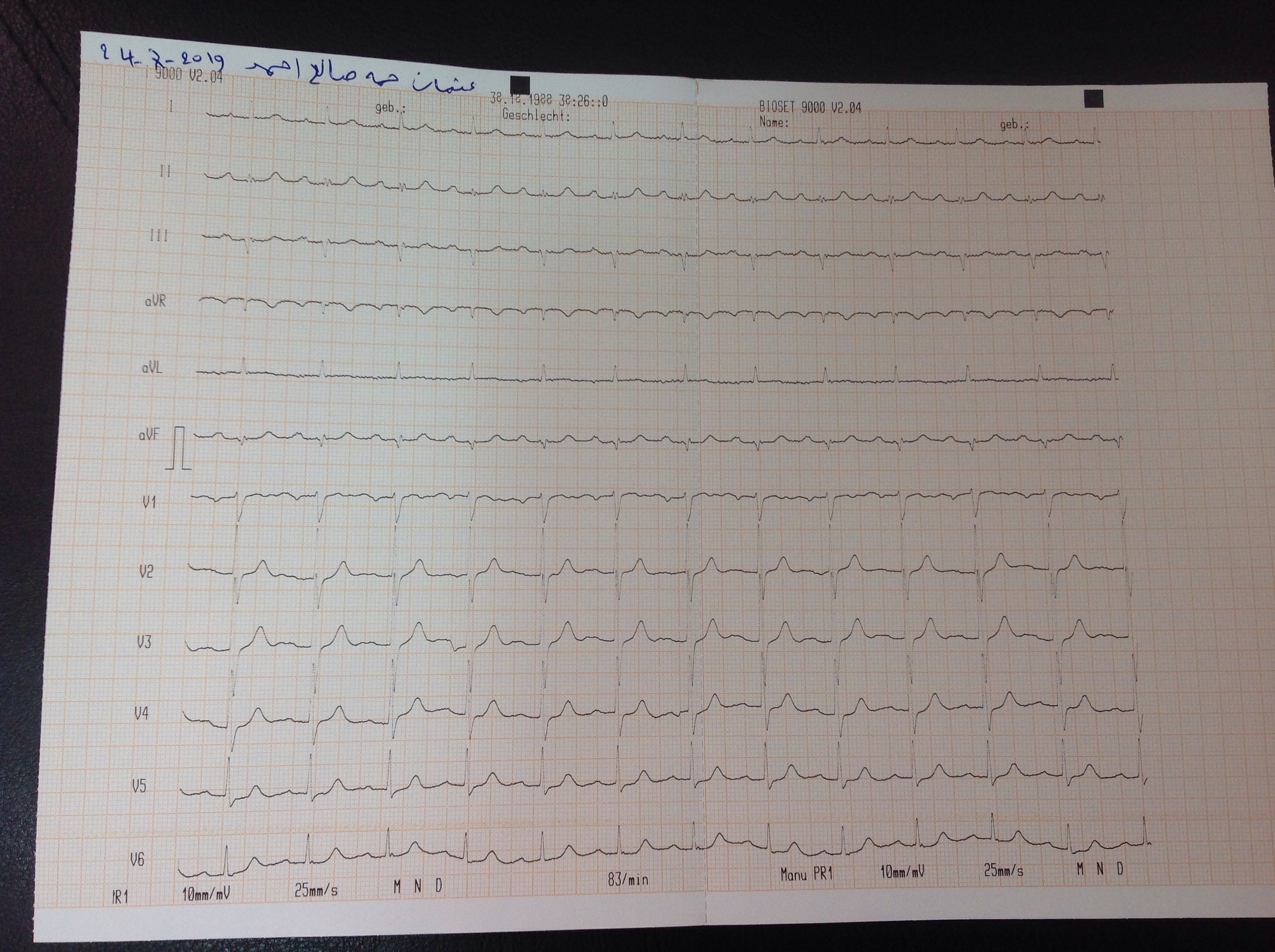 BP : 127/70 PR : 85 RR : SPO2 : 98 CC : CHEST PAIN FOR 1 MONTH