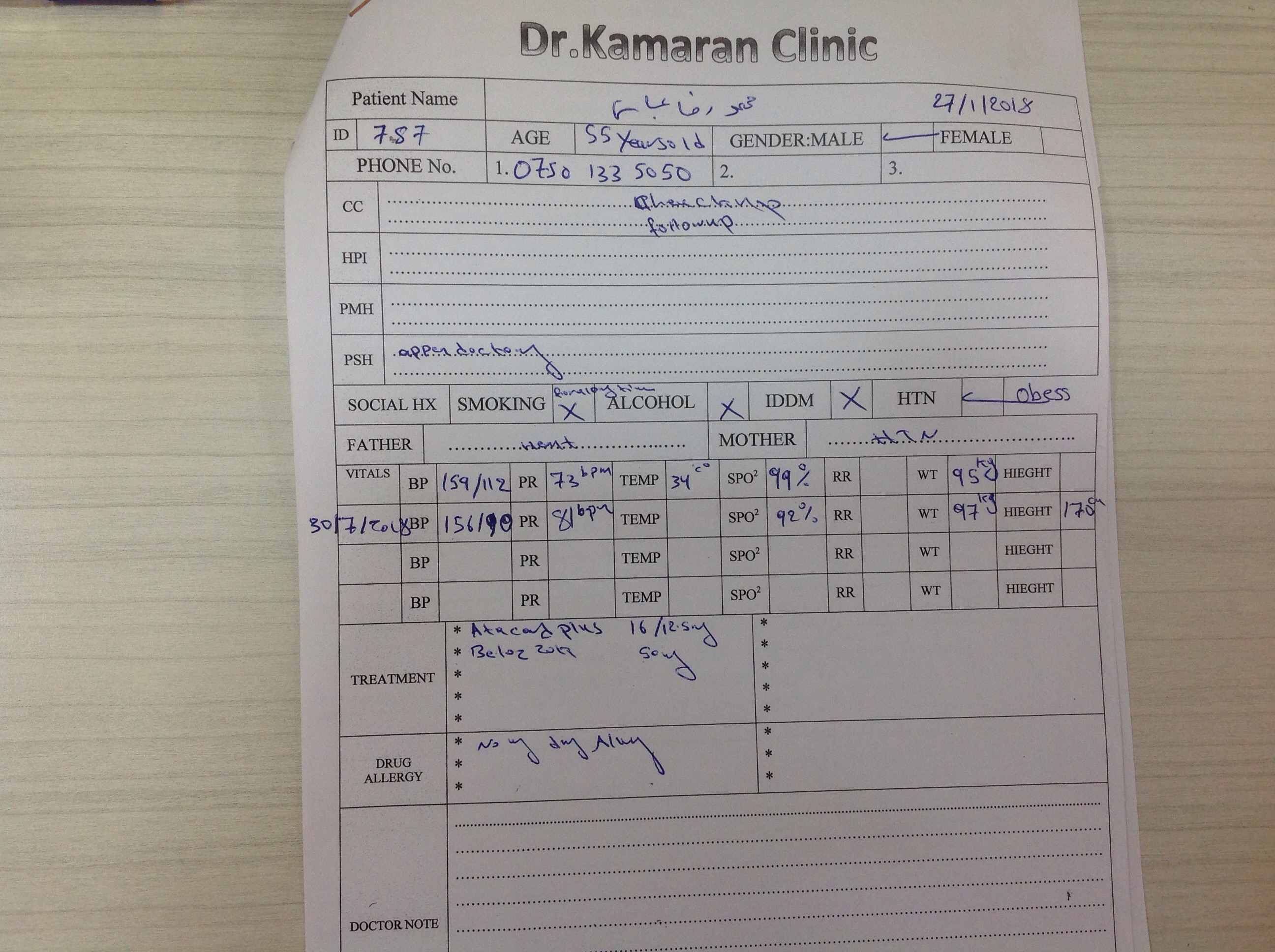 BP : 150/100 PR : 75 RR : SPO2 : 97% CC : FOLLOW UP