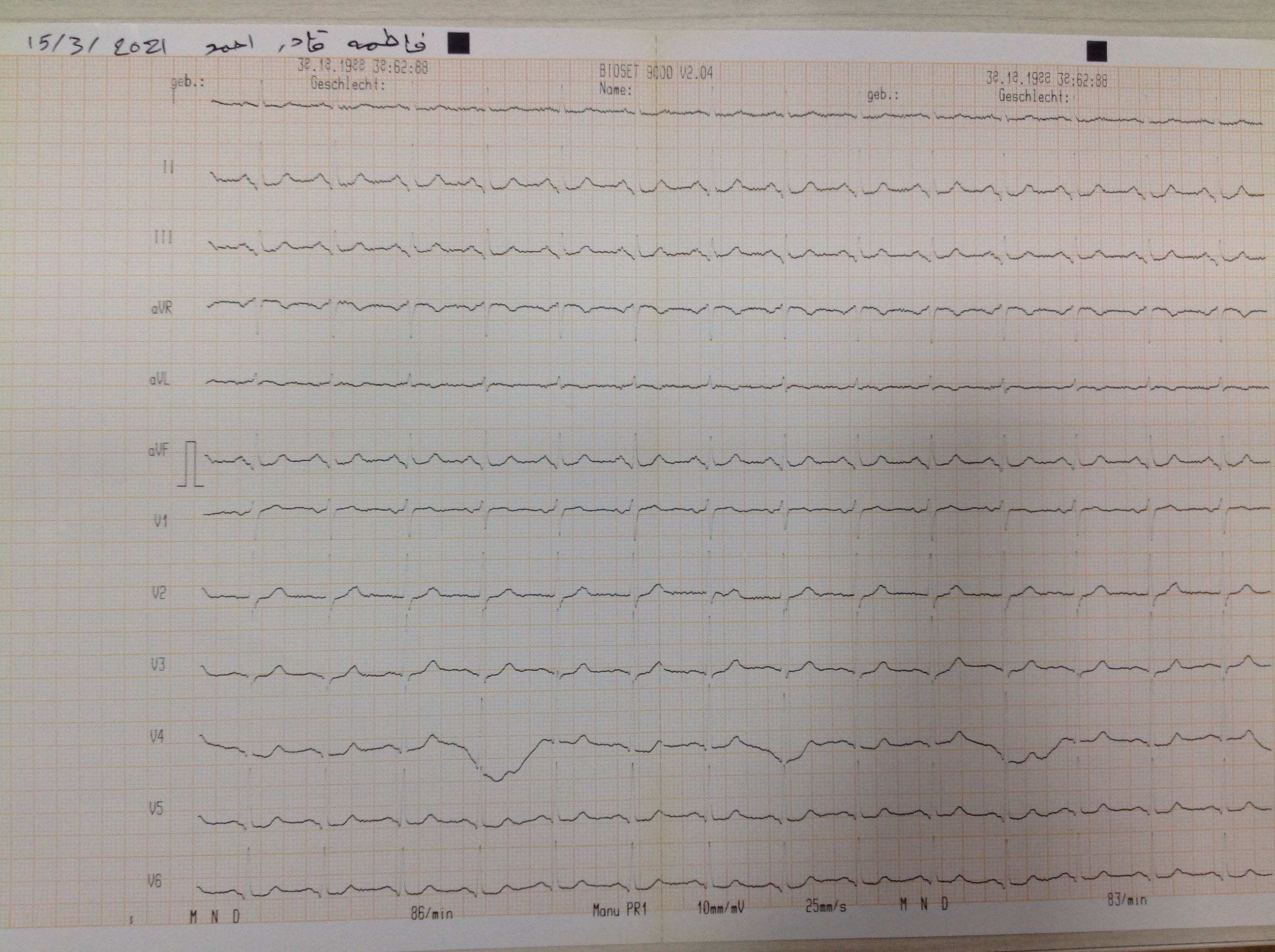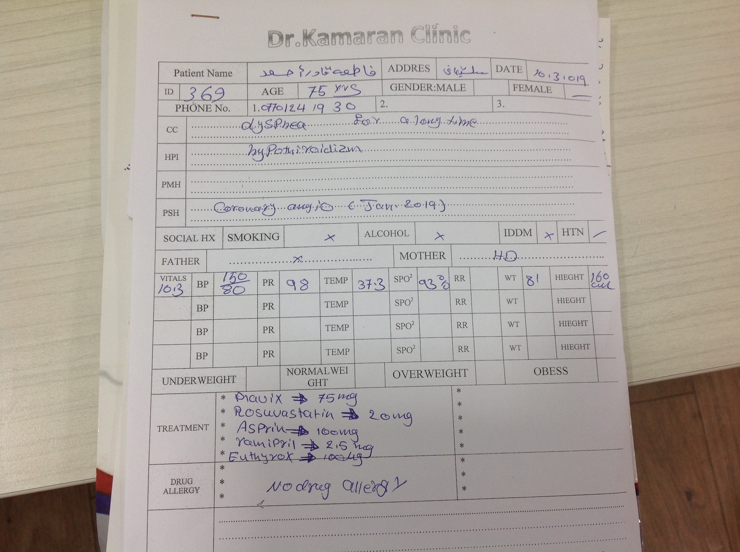 BP : 150/88 PR : 76 RR : SPO2 : 96 CC : CHEST PAIN , DYSPNEA SOME TIME