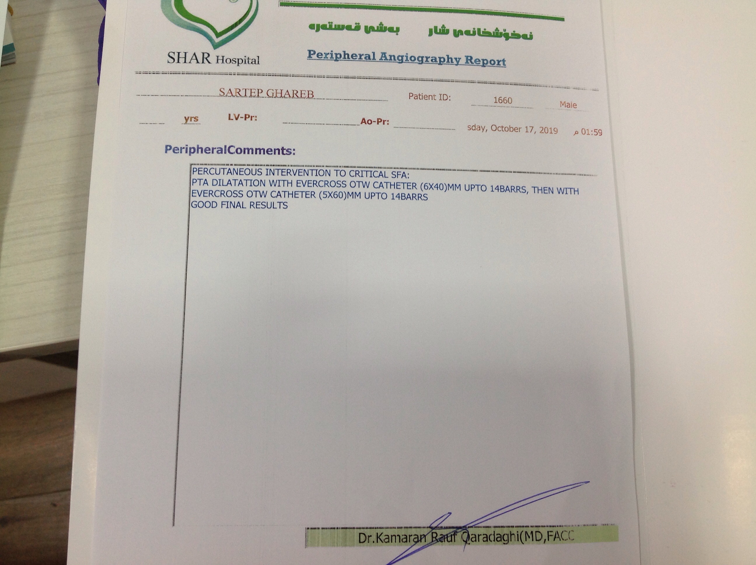 BP : 113/81 PR : 93 RR : SPO2 : 97 CC : FOLLOW UP FOR PERIPHERAL ANGIO